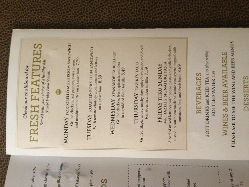 Taziki’s Mediterranean Cafe - Hampden Menu